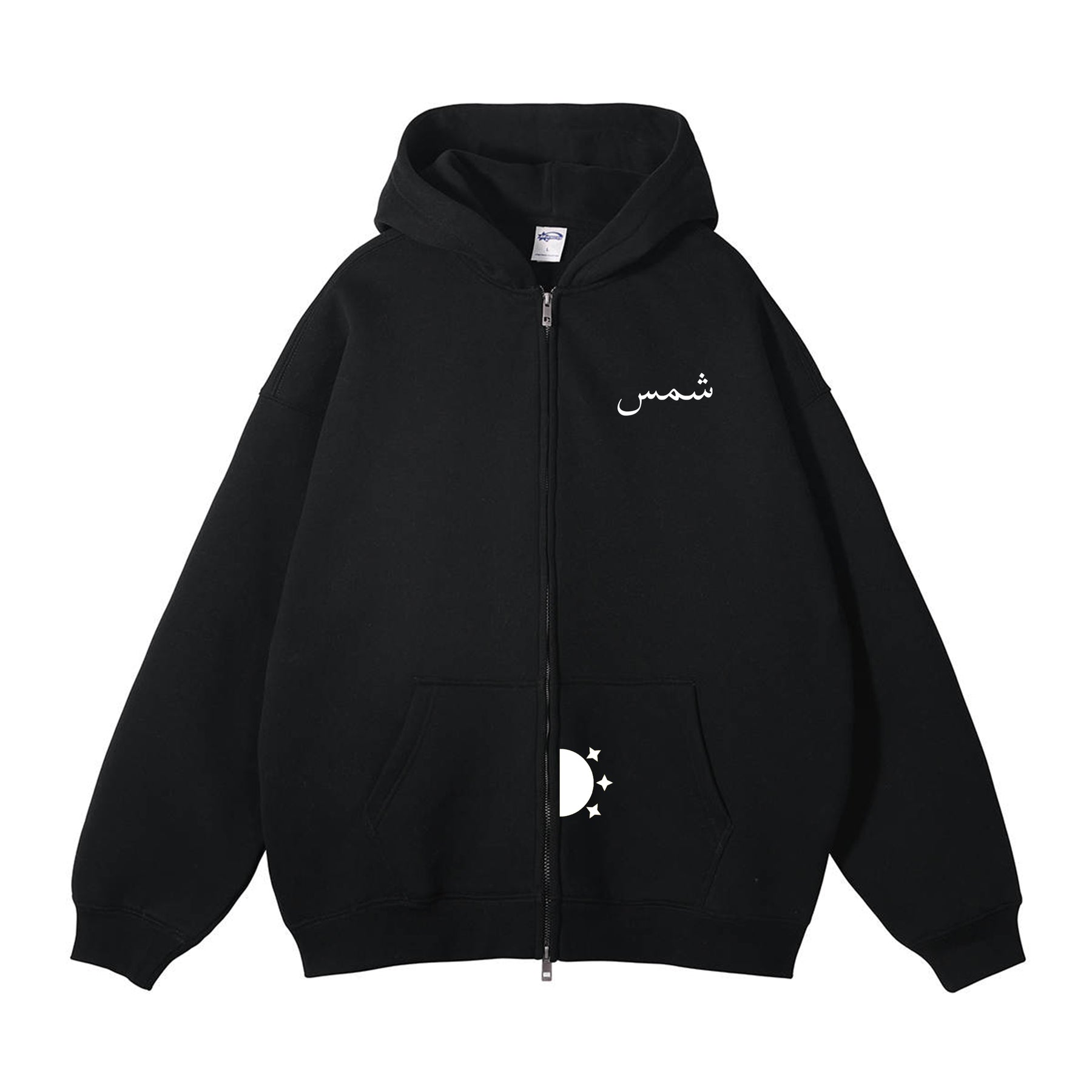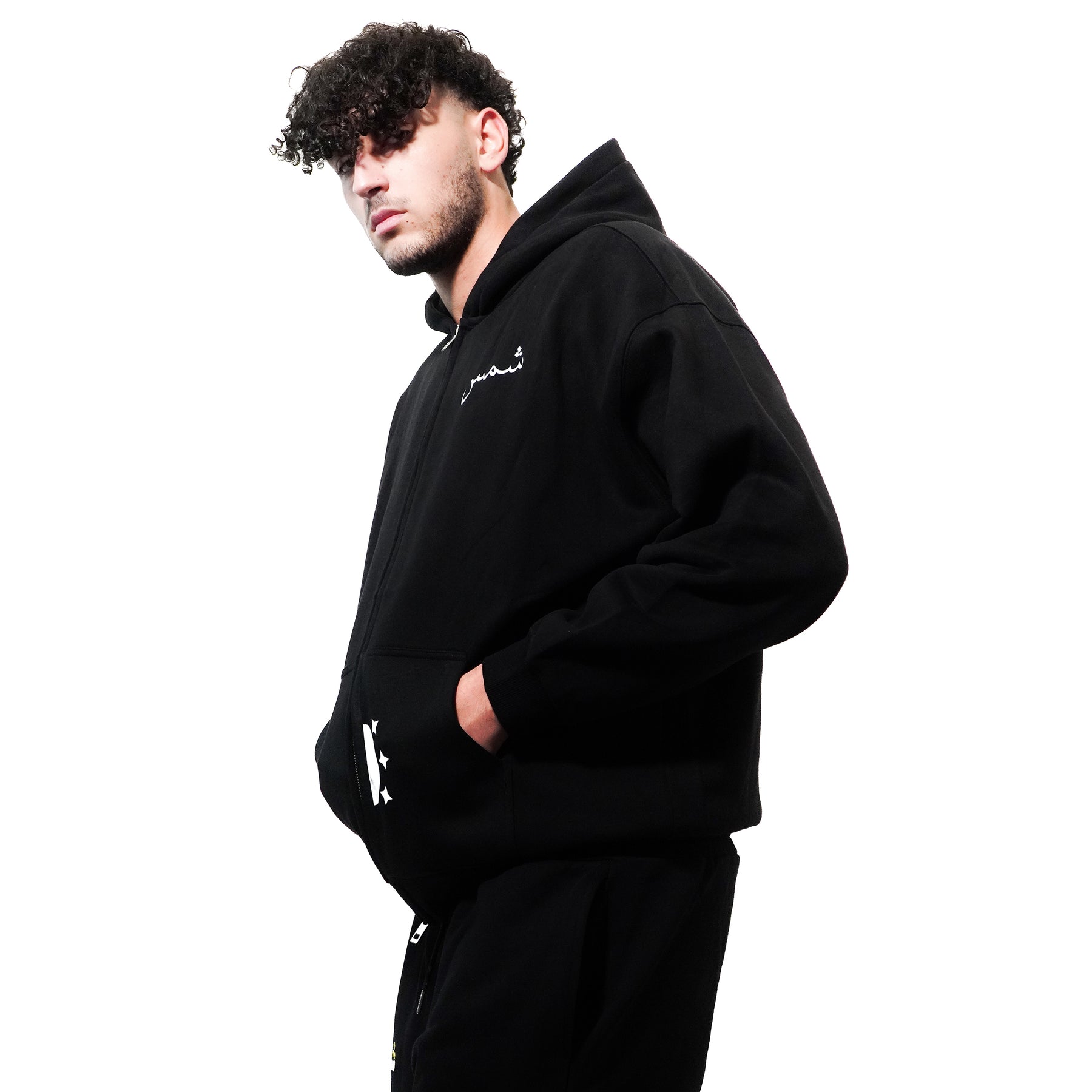 ZIP SHAMS & QAMAR NOIR LOGO BLANC